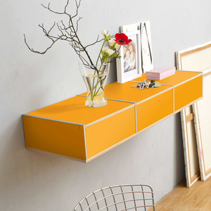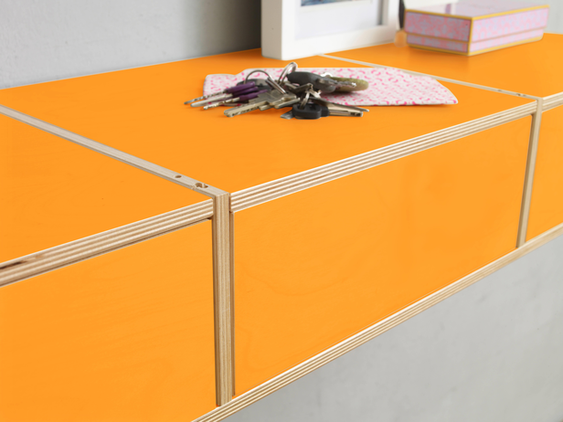 Wählen Sie bei Ihrer Hängekommode Freiburg zwischen den rio-Farbvarianten Orange (im Bild), Schlamm, Aubergine, Noir und Weiss. In allen farbigen Ausführungen sind die Kanten des Birkenschichtholzes mit diesem Lack versehen. Die Oberflächen bestehen aus einer robusten Melaminharzbeschichtung. So ist Ihnen eine hohe Langlebigkeit Ihres Aufbewahrungsmöbels gewiss.